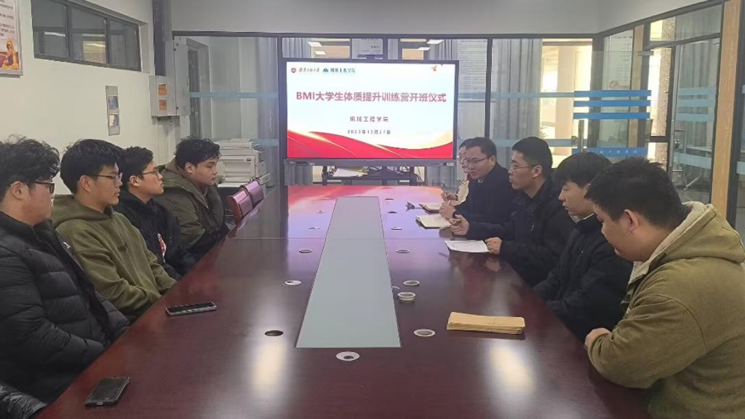 为推进“三全六专”育人实践,提升大学生身体素质,促进学生养成健康生活习惯,引导学生“壮起来”,12月27日,机械工程学院举行BMI大学生体质提升训练营启动仪式,学院党委副书记秦广虎老师、学院团委副书记王海燕、22级辅导员孙志鹏和训练营学员代表参加了本次活动。