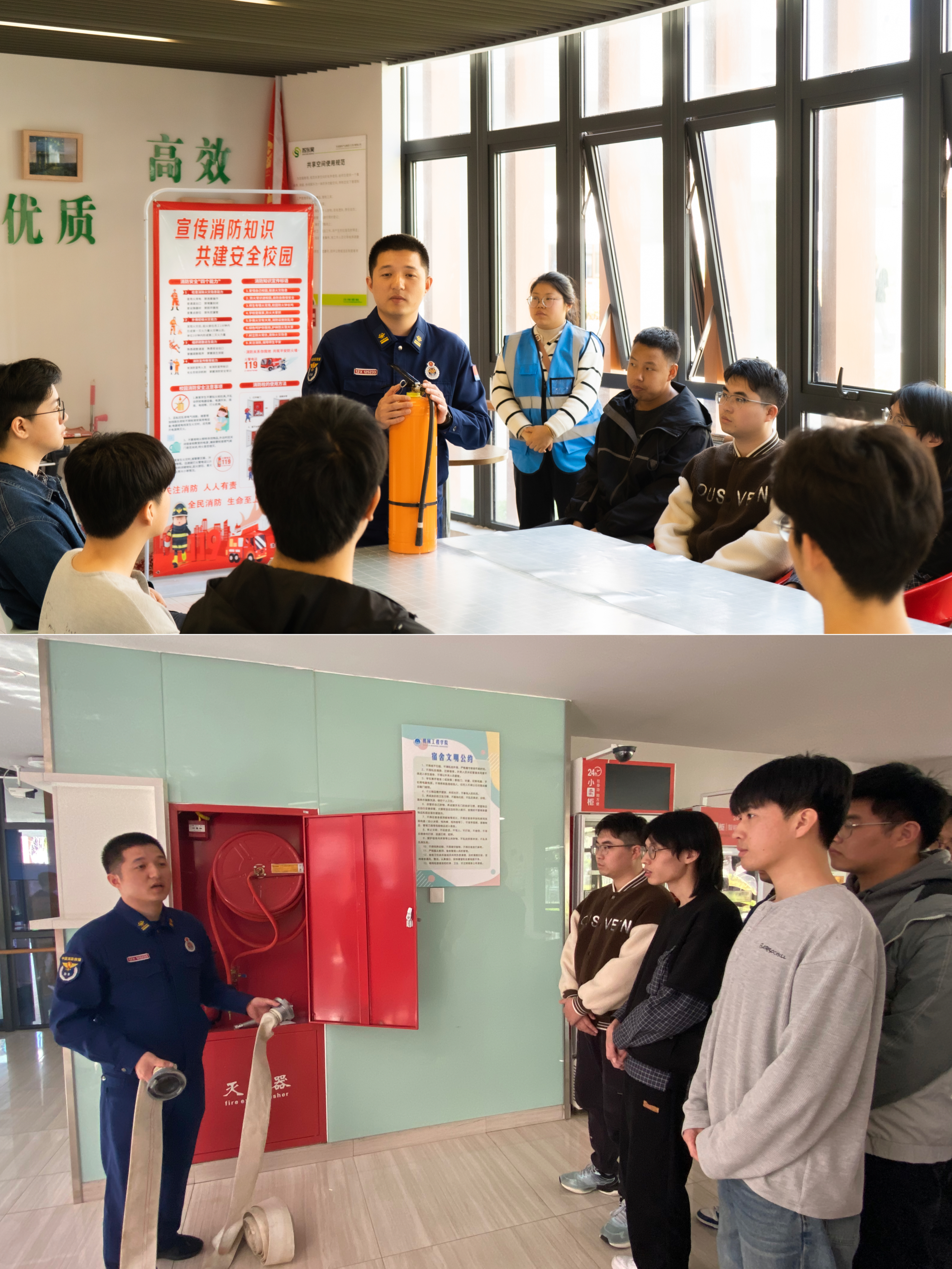 消防救援大队工作人员结合日常用电、用火情况,从火灾危险性、消防安全“四个能力”建设等方面,针对性讲解学生社区楼宇和实验室防火、灭火、疏散逃生、自救互救等知识,教会学生如何使用灭火器、消火栓等消防器材,让学生亲自上手、亲身体验,真正掌握操作方法和使用技巧,并开展灭火实操演练。