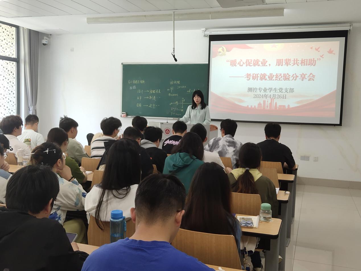 为帮助测控专业学生尽早明确方向、做好规划,指导他们顺利走好就业及考研之路,4月26日,测控专业学生党支部在学习中心X206教室开展以“暖心促就业,朋辈共相助”为主题的就业考研经验分享会,支部党员、2020级和2021级测控专业部分学生参与其中。活动由支部书记时慕天主持。