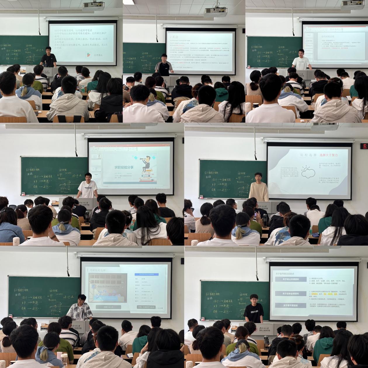 分享会上,七位测控专业毕业生作为优秀朋辈代表做经验分享。支部党员刘丽鹏、欧阳伦发结合自身求职经历,从职位选择、简历制作、面试技巧以及就业观念和心态的调整等方面分享了自己的就业经验,范杰、熊天赐、孙齐、李浩、李张生则围绕院校和专业选择、各科学习规划、复试重点难点、备考注意事项等方面,详细介绍了考研上岸合肥工业大学、河海大学、中国计量大学的经历,并在交流环节中,针对性地解答了现场学生对于职业规划与选择的疑惑。