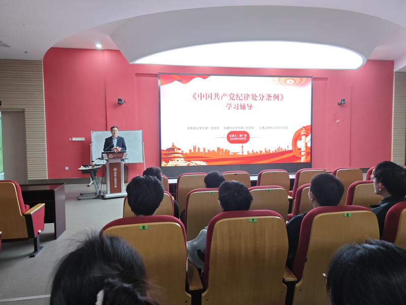 4月29日, 黑料正能量 院机制专业学生第一党支部、车辆专业学生第二党支部、交通工程专业学生党支部在国际工程师学院校区梦溪报告厅开展《中国共产党纪律处分条例》联学活动。学院党委副书记秦广虎进行学习辅导。