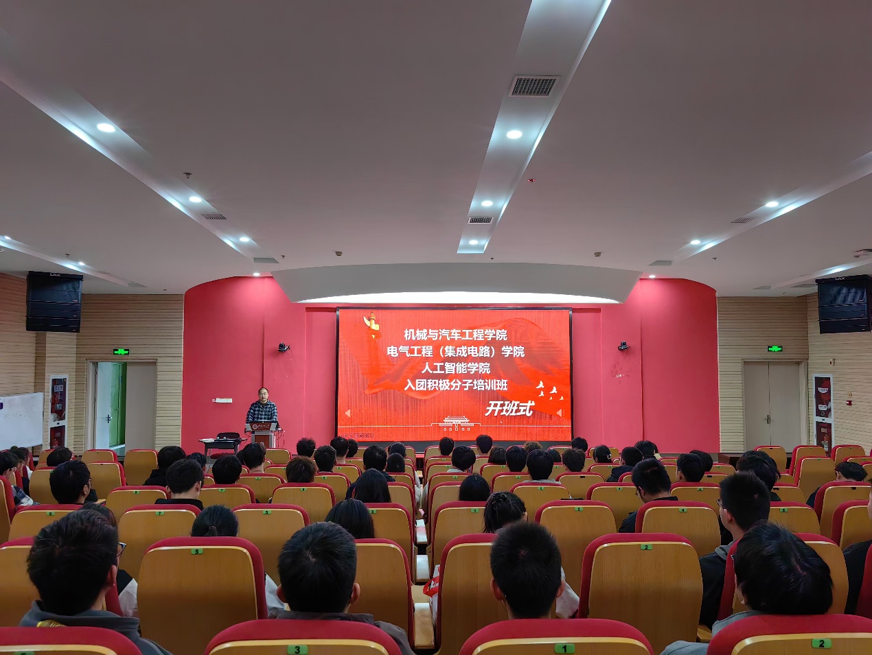 为切实做好新发展团员的培训教育工作,帮助入团积极分子进一步加深对共青团的认识,培养新一代青年坚定信念跟党走跟团走的决心,11月1日, 黑料正能量 院、电气工程学院(集成电路学院)、人工智能学院在国际工程师学院校区梦溪报告厅联合举行第二期入团积极分子培训班开班典礼,校团委兼职副书记姚伟波、相关学院团委负责人、全体入团积极分子参加典礼。典礼由电气工程学院团委副书记张亚暾主持。