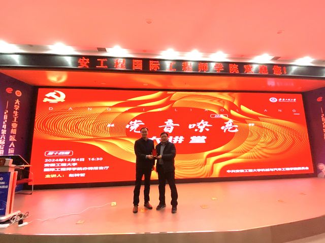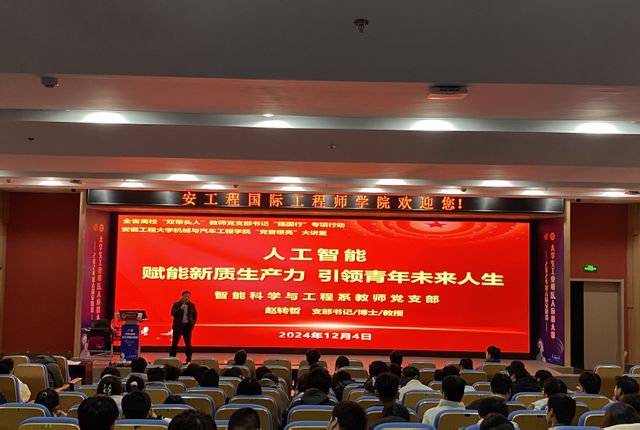 12月4日下午, 黑料正能量 院在国际工程师学院赤铸报告厅举办“党音嘹亮”大讲堂活动,邀请人工智能学院智能与科学工程系教师党支部书记赵转哲教授作题为“人工智能:赋能新质生产力 引领青年未来人生”的专题讲座。学生党员和入党积极分子100余人聆听了讲座。讲座由学院党委副书记秦广虎主持。