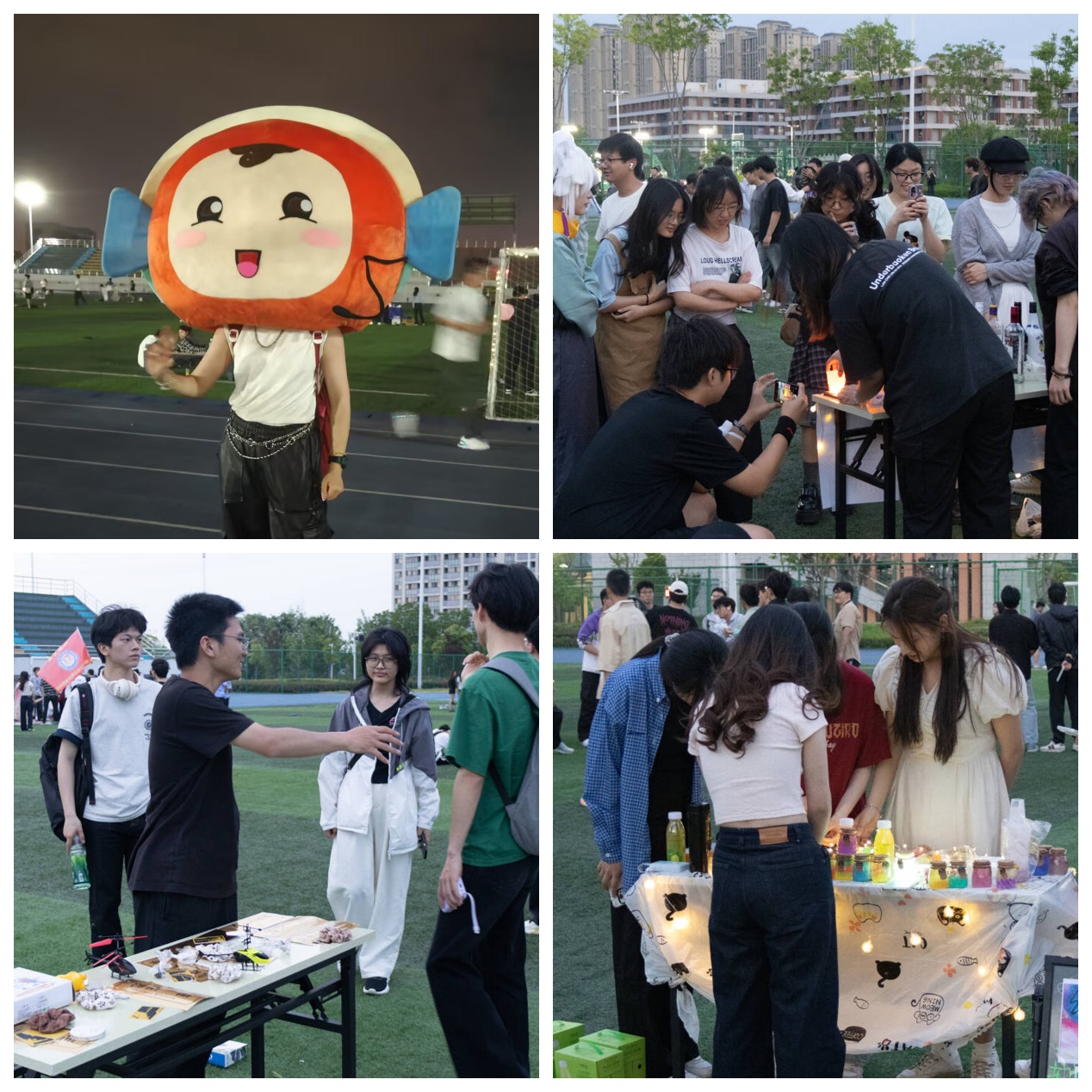 同心协力,互动游戏释放青春活力。五彩斑斓的霓虹灯下,学生尽情享受着美食和艺术的交融,感受着这个夜晚的独特魅力。精心装扮的足球门和操场围墙,穿着玩偶服的志愿者,欢乐有趣的各种游戏。有接力画画、加字游戏、蒙眼贴鼻子、盲盒摸舞、金鸡独立、套住队友、气球搬运、上下左右趣味游戏等,在工作人员的指引下,同学们积极参与、笑声不断,在漫步中感受校园的魅力,在游戏中感受团结的力量,在互动中感受友谊的美好,带着美好心情和游戏的胜利品继续探索其它有趣环节。
