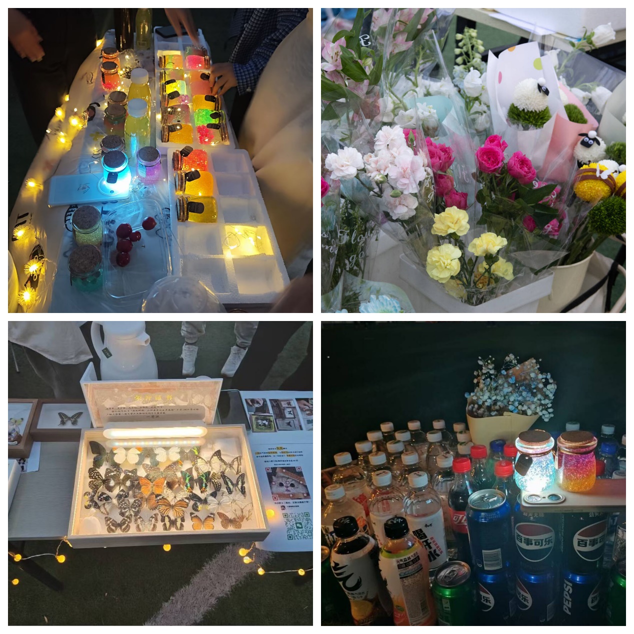创意劳动,花式店铺展现青春巧思。在夜市区域,来自不同学院、不同协会的学生团队,利用自身专业技能和兴趣爱好组建了创意小商铺,有学生亲自制作的丫丫小厨房,有大学生创业项目荔枝花坊,有胆小勿入的惊喜物品,有创意十足的海娜手绘,有欢乐套圈圈、幻彩星空、水晶编绳手链、皮蛋杂货、橙子桌游店铺,有情意绵绵的几何情书,有现场制作的果物品屿里IsleFruit、冰粉、乌梅汁酱等,种类丰富、琳琅满目,实用精巧的各式礼品,让同学们眼花缭乱、兴致勃勃。学生扮演的店主们热情主动,积极营业,吸引了众多学生驻足停留。