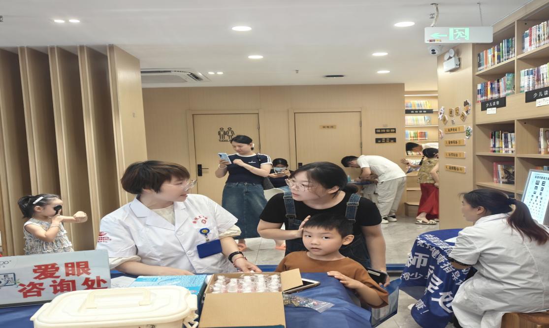 现场为民口腔医院、宣城好视力眼科诊所为社区小朋友提供了口腔、视力检查。团队通过发放资料、现场讲解等方式引导市民群众养成良好的健康生活习惯,带领小朋友前往爱眼咨询处进行视力检查,包括裸眼视力检查,矫正视力检查,屈光检查,眼部健康检查等等,对于小朋友们的眼部健康问题,医生们一方面给予了正确用眼建议,一方面给予了缓解用眼过度建议。