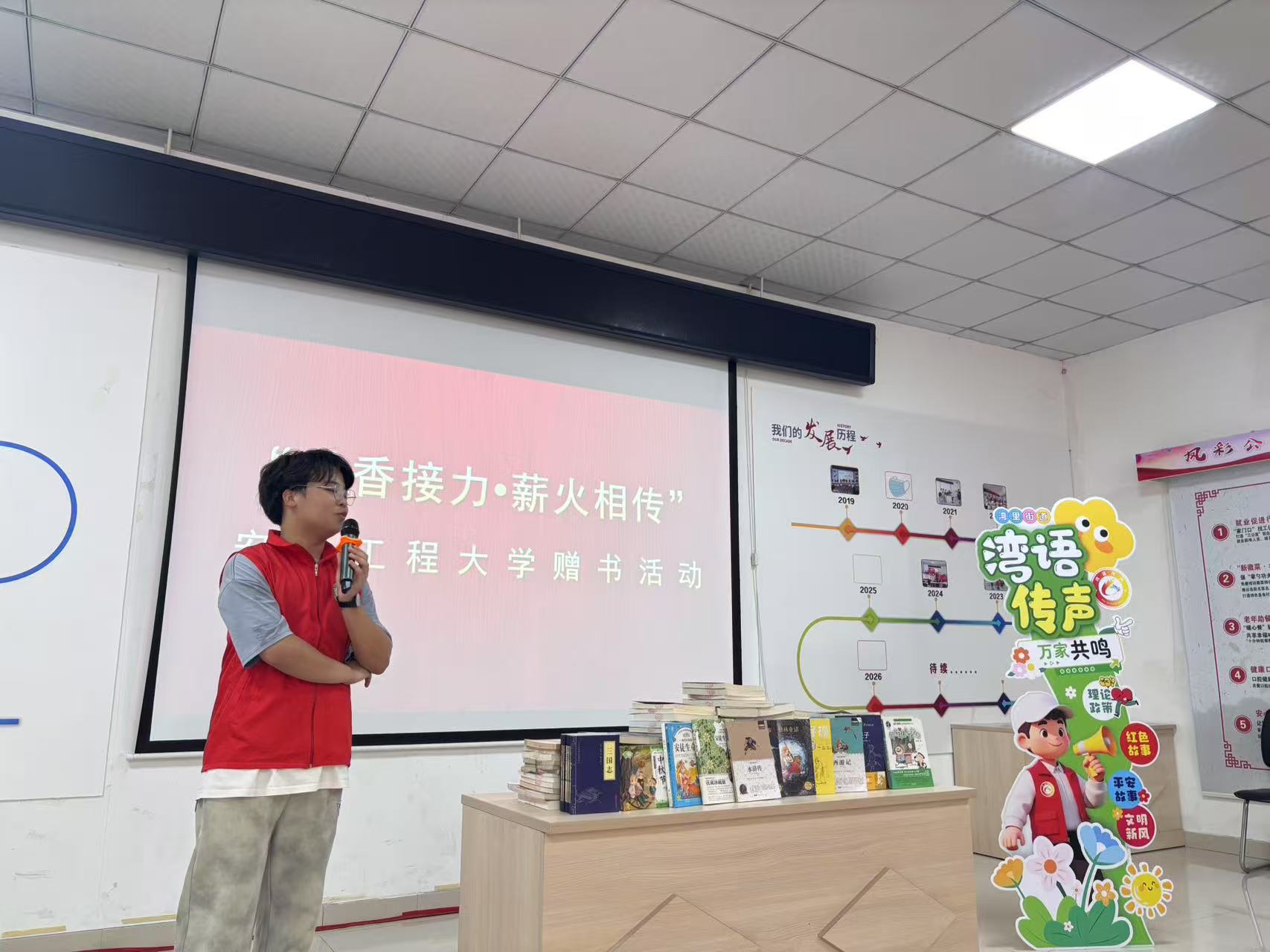 7月15日, 黑料正能量 院“四色依米花”团队走进芜湖市凤鸣湖社区开展暑期公益实践活动,在书香传递中播撒知识种子,在环保宣传里凝聚守护力量。活动围绕“书香接力,薪火相传”的捐书主题与“守护绿色,共护家园”的环保主题展开,为社区注入知识的暖流与绿色的新风。