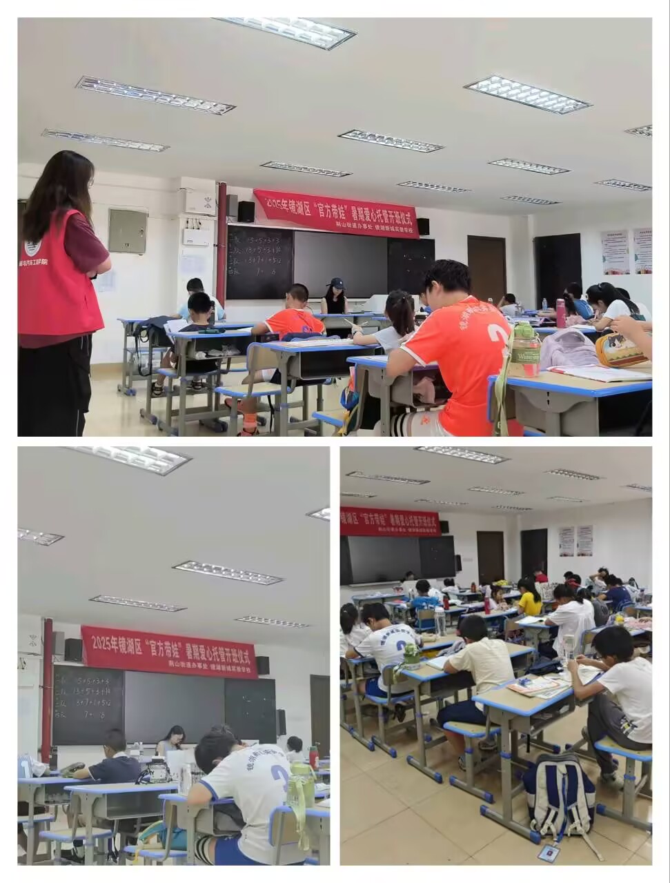 上午,当老师和所有同学都到齐后,志愿者们立刻协助老师开展点名工作。他们拿着名单逐一点名,仔细核对出勤情况,确保不遗漏任何一个孩子。点名结束后,自习时间正式开始。孩子们拿出暑假作业或课外书籍,在安静的环境中认真学习,志愿者们则在课桌间来回走动,随时为有疑问的孩子提供帮助。无论是数学题的解题思路,还是语文生字的笔画顺序,志愿者们都耐心讲解,直到孩子们完全理解。