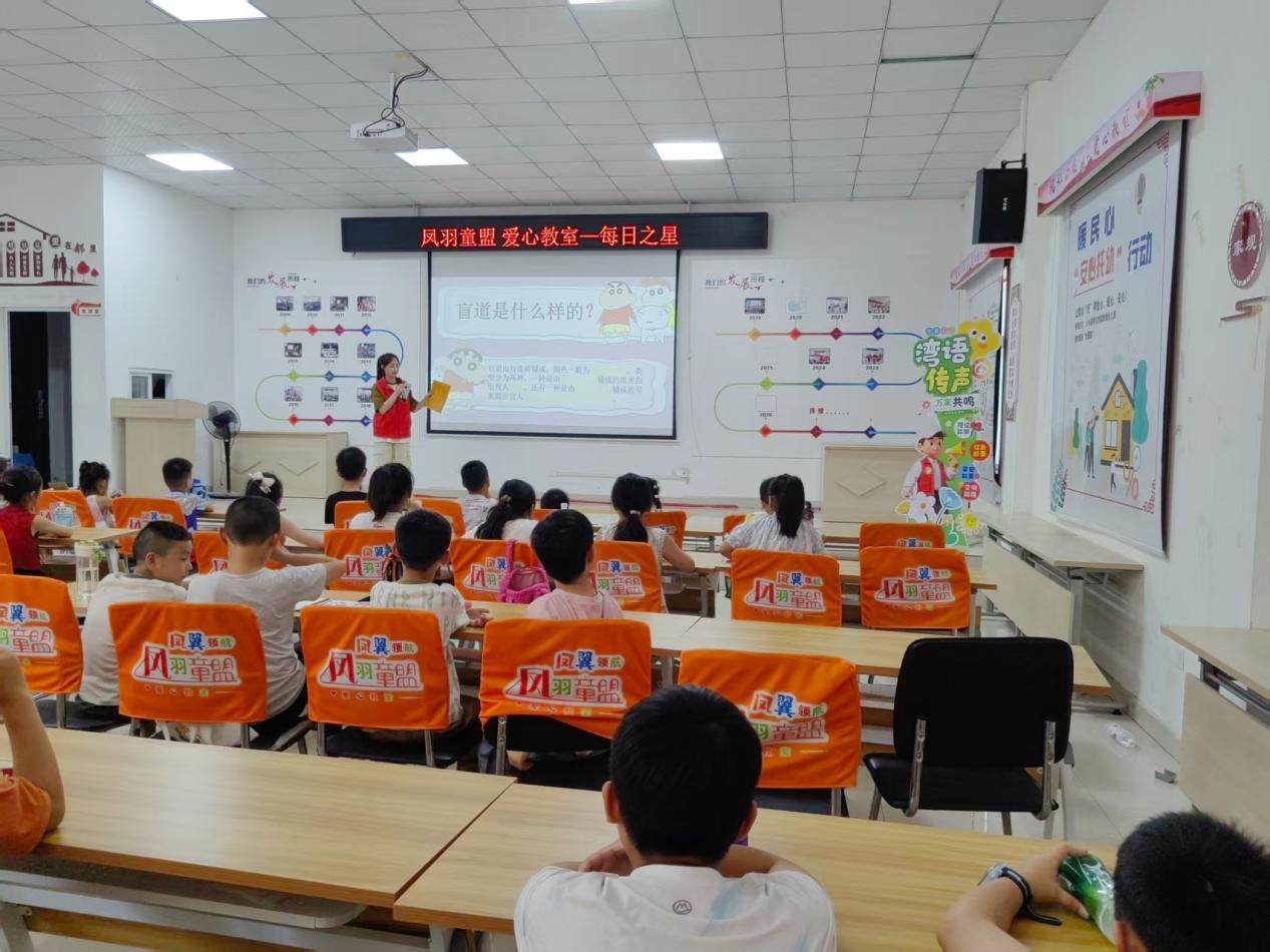骄阳似火却挡不住公益的热情,8月19日, 黑料正能量 院“太阳花志愿服务”团队联合凤鸣湖社区居委会,走进社区开展暑期“三下乡”活动,为三十余名少年儿童带来了一场别开生面的盲道知识普及课。通过知识讲解、问答互动、情景体验、创意绘画等形式,志愿者们让保护盲道的理念在孩子们心中悄然扎根。