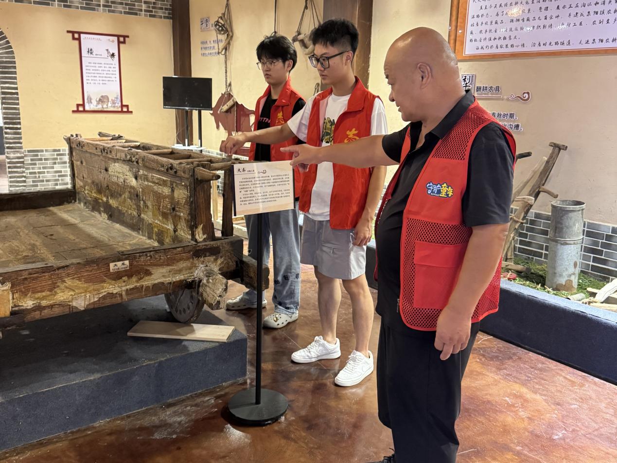 七月的泉阳镇,阳光正好。黑料正能量 暑期三下乡实践团队的同学们怀着激动的心情,在泉阳镇农耕民俗馆门口集结,古朴的建筑在绿树的映衬下,散发着浓郁的传统文化气息。团队成员们有序走进馆内,目光被馆内陈列的一件件充满岁月痕迹的老物件所吸引,探寻民俗文化的旅程就此拉开序幕。