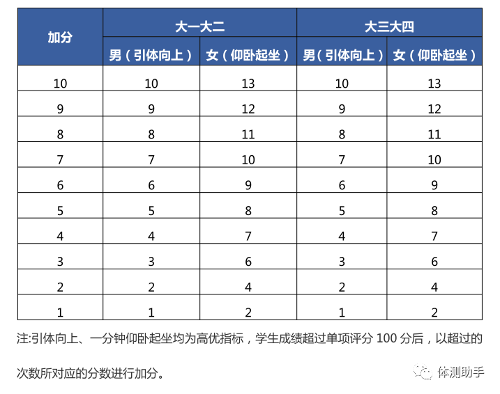 1. 男生引体向上 女生仰卧起坐(单位:次)