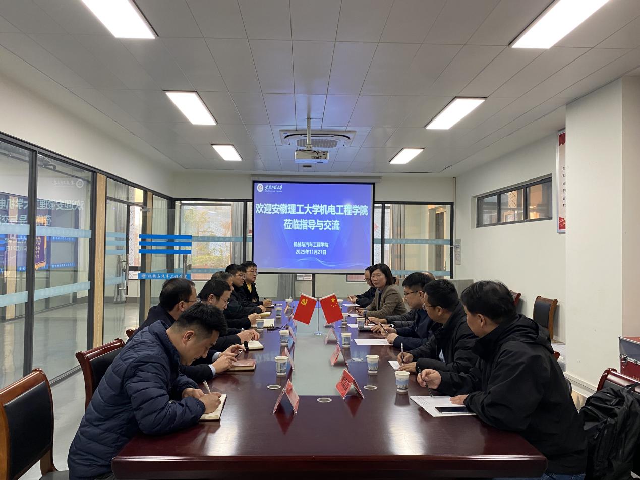 11月21日,安徽理工大学机电工程学院党委书记张岚、院长沈刚,新能源与智能网联汽车学院党委书记程刚,机电工程学院副院长(挂职)马文涛和相关系主任一行来学院调研交流。学院领导班子和系主任参加座谈。会议由党委书记魏长顺主持。