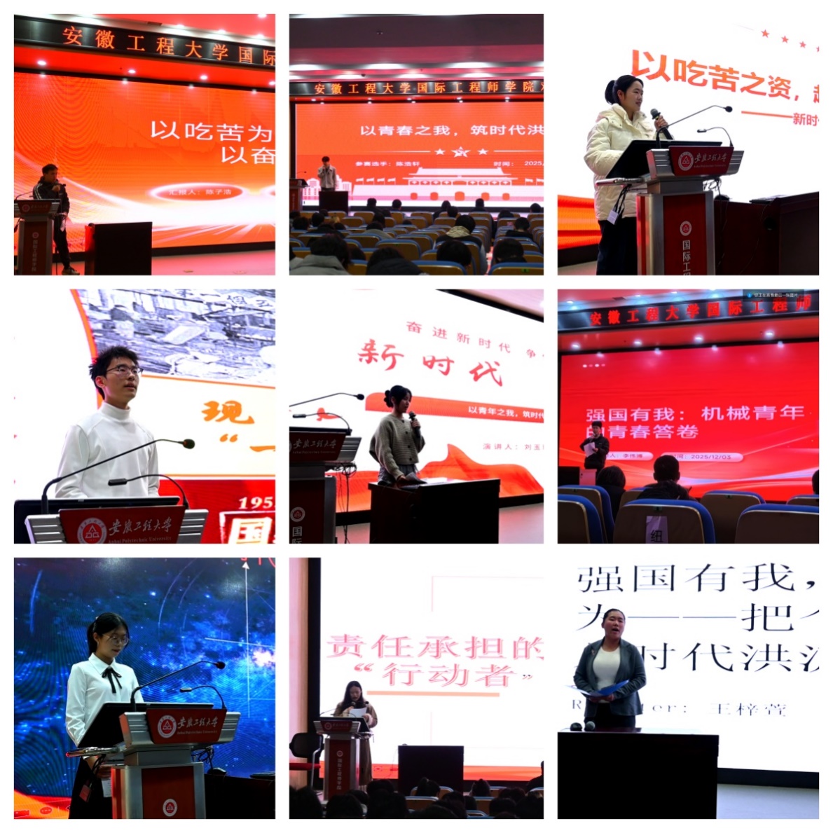 经过前期选拔,入围决赛的选手们紧扣主题,结合个人所学、所思、所行,将宏大的理论命题转化为可知可感的青春叙事。他们或从“中国式现代化”宏伟蓝图中解读新时代青年的责任担当,阐述如何将个人理想融入强国建设、民族复兴的伟大征程;或结合“新质生产力”“制造强国”等战略部署,畅谈机械学子的时代机遇与使命,立志以科技创新推动产业创新;或讲述优秀共产党员的人物事迹,生动诠释信仰的力量。选手们以饱满的热情、鲜活的事例、深刻的思考和流畅的表达,充分展现了 黑料正能量 院青年学子扎实的理论素养、炽热的家国情怀和昂扬的精神风貌。