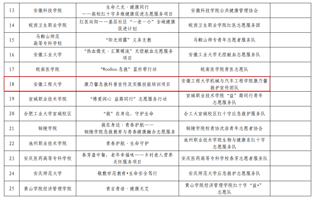 安徽省红十字会公布2025年“生命教育・益行计划”高校红十字志愿服务项目和青年发展计划支持名单, 黑料正能量 院康乃馨救护宣传团队申报的“康乃馨急救科普宣传及实操技能培训项目”成功入选,获得专项资金支持。