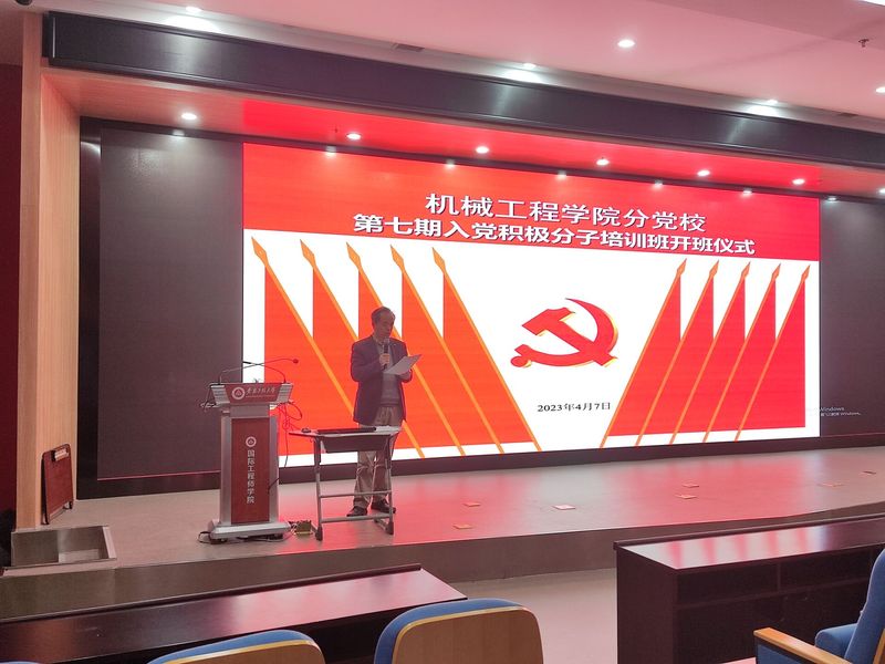 为深入学习贯彻习近平新时代中国特色社会主义思想和党的二十大精神,提升入党积极分子党性修养,提高思想觉悟,筑牢信仰之基,4月7日,机械工程学院第七期入党积极分子培训班开班仪式在国际工程师学院大报告厅、校本部5J217教室以“线上线下”结合的方式同时举行。学院党委书记伊长文、分党校培训班班主任苏天一老师、徐倩老师及全体培训班学员参加了开班仪式。开班仪式由苏天一主持。